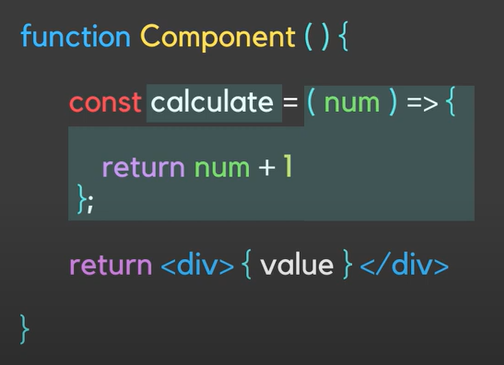 즉 컴포넌트가 제일 처음 렌더링 될 때만 calculate를 초기화해주고 이후에 렌더링 될 때는 변수가 새로운 함수 객체를 할당받는 것이 아니라 이전에 할당받은 객체를 계속해서 가지고 있으면서 사용할 수 있게 된다.