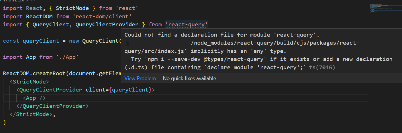Could not find a declaration file for module 'react-query'