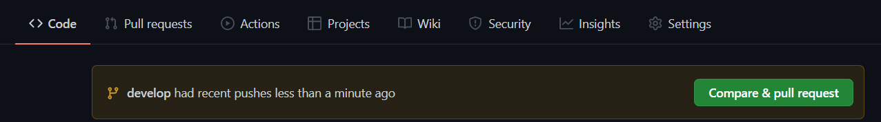 $ git push -u origin develop // 자신의 원격 저장소에 push를 해준다.