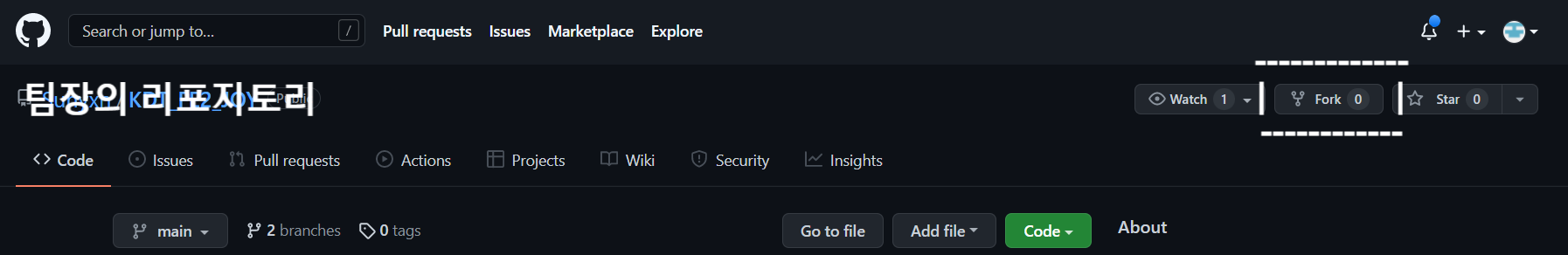 1. 팀장은 GitHub에서 새로운 리포지토리를 판다.