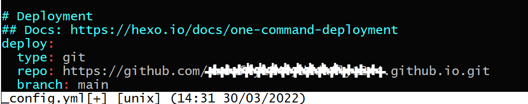 $ vi _config.yml이후에 normal mode에서 :100을 입력한다. normal node에서 100번째 줄로 이동하라는 뜻이다. 그리고 h,j,k,l(방향키)을 대충 눌러보면서 밑으로 몇 줄 이동하면 #Deployement가 나온다.